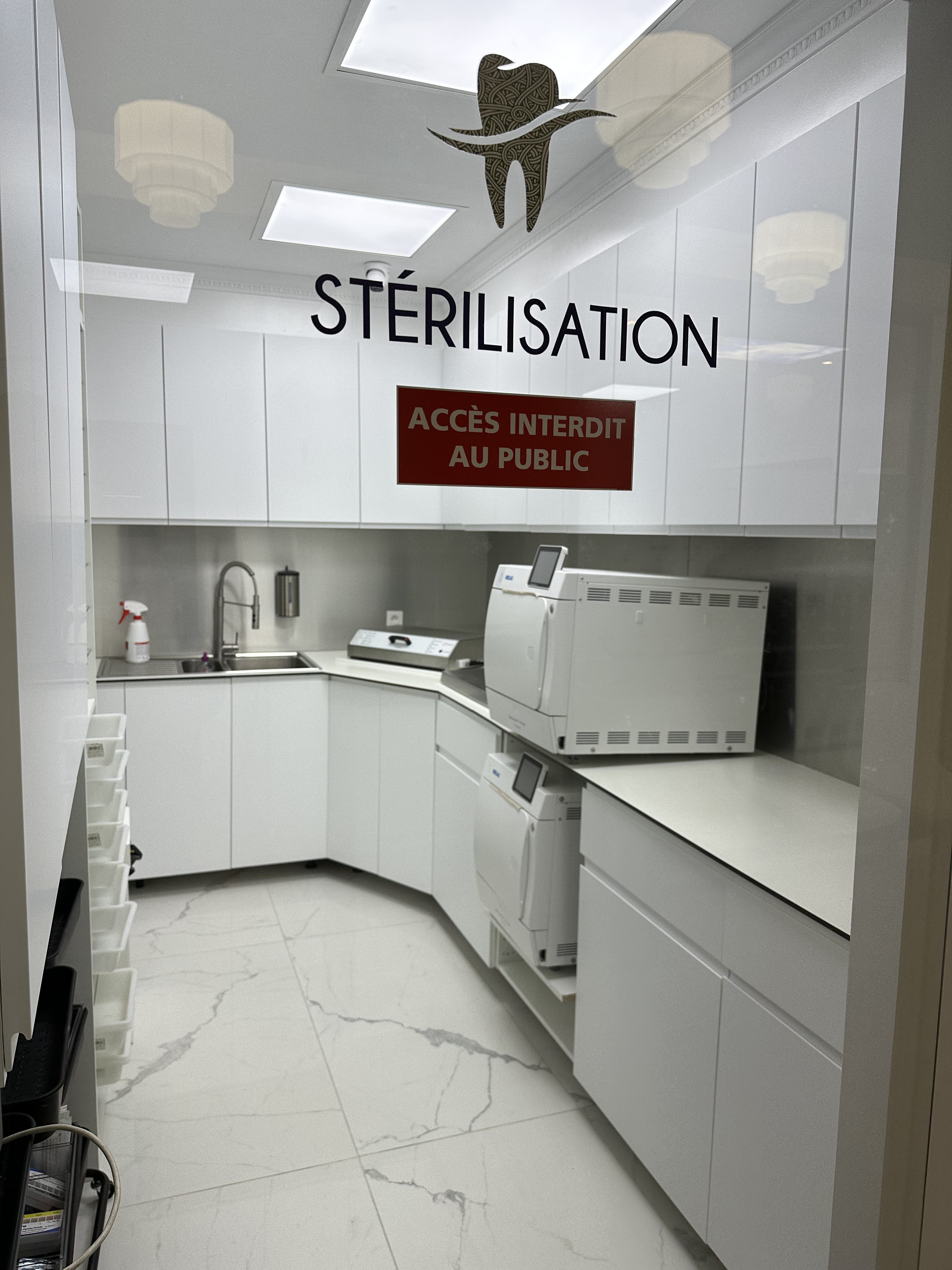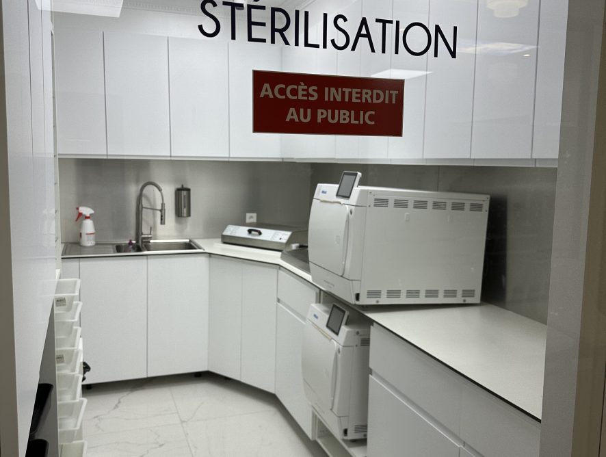 Tous les instruments passent par le processus de stérilisation complet après chaque utilisation : bain de décontamination – ultrasons-haute température et haute pression. Chacune des étapes garantie une stérilisation optimum des instruments. De plus nos locaux sont traité aux Ultra Violet quotidiennement pour éliminer toutes bactéries ou virus dans les salles de soins.
